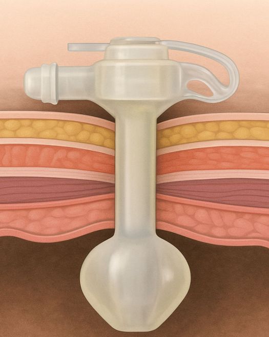 Luego de aproximadamente 8 semanas, la sonda se reemplaza por un botón gástrico: un dispositivo discreto, cómodo y de bajo perfil que facilita el cuidado y mejora la calidad de vida del paciente.