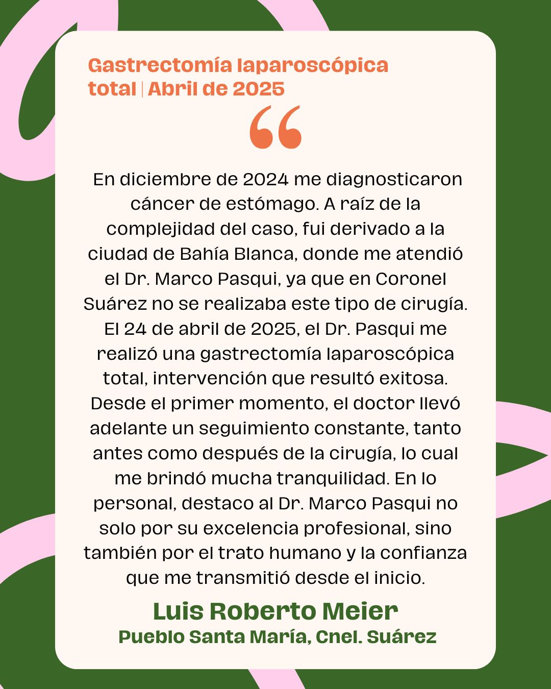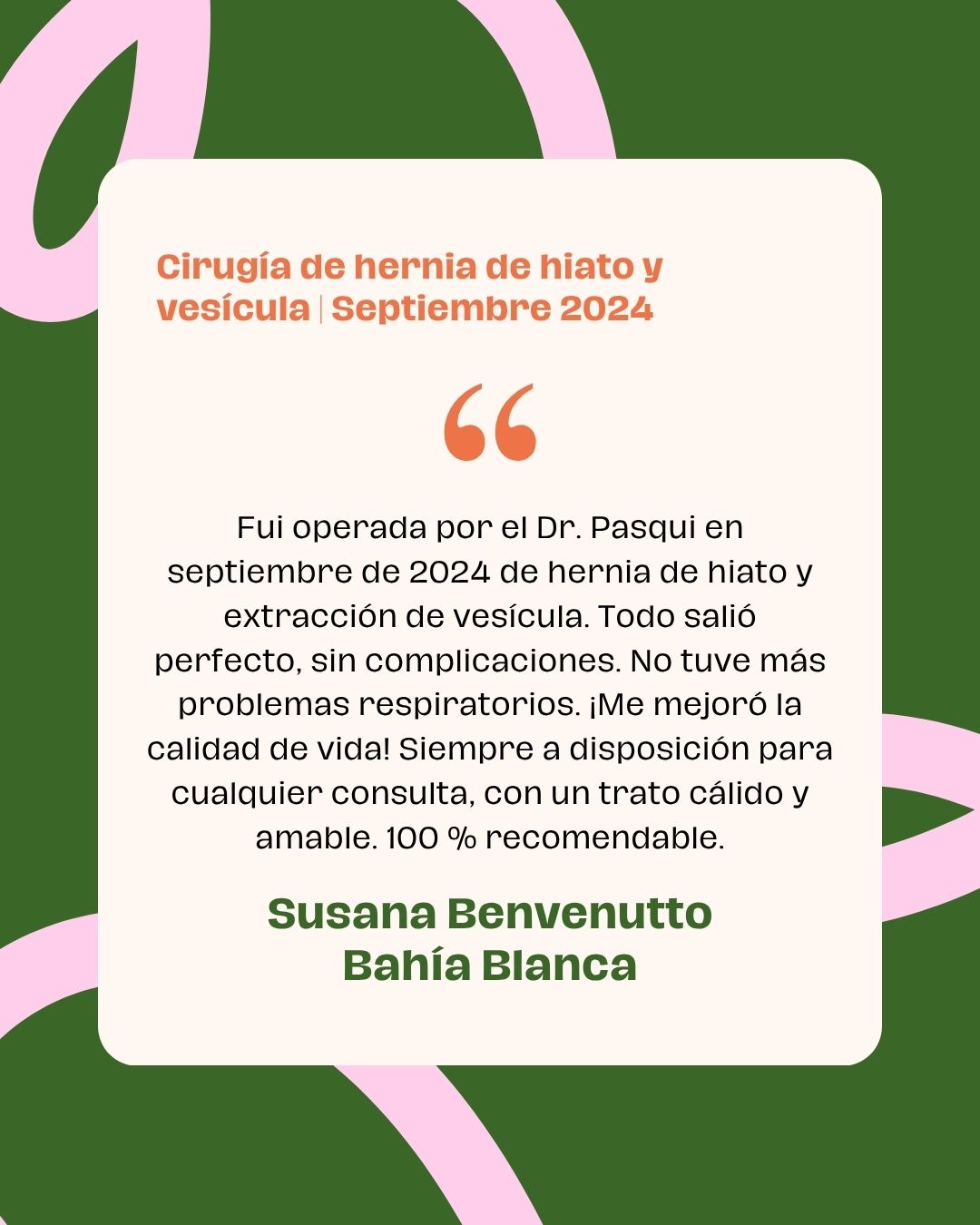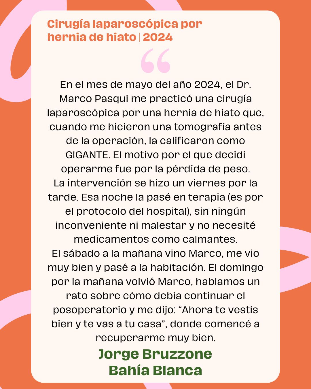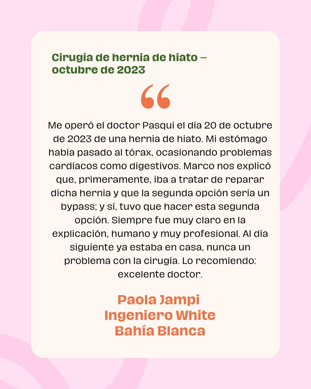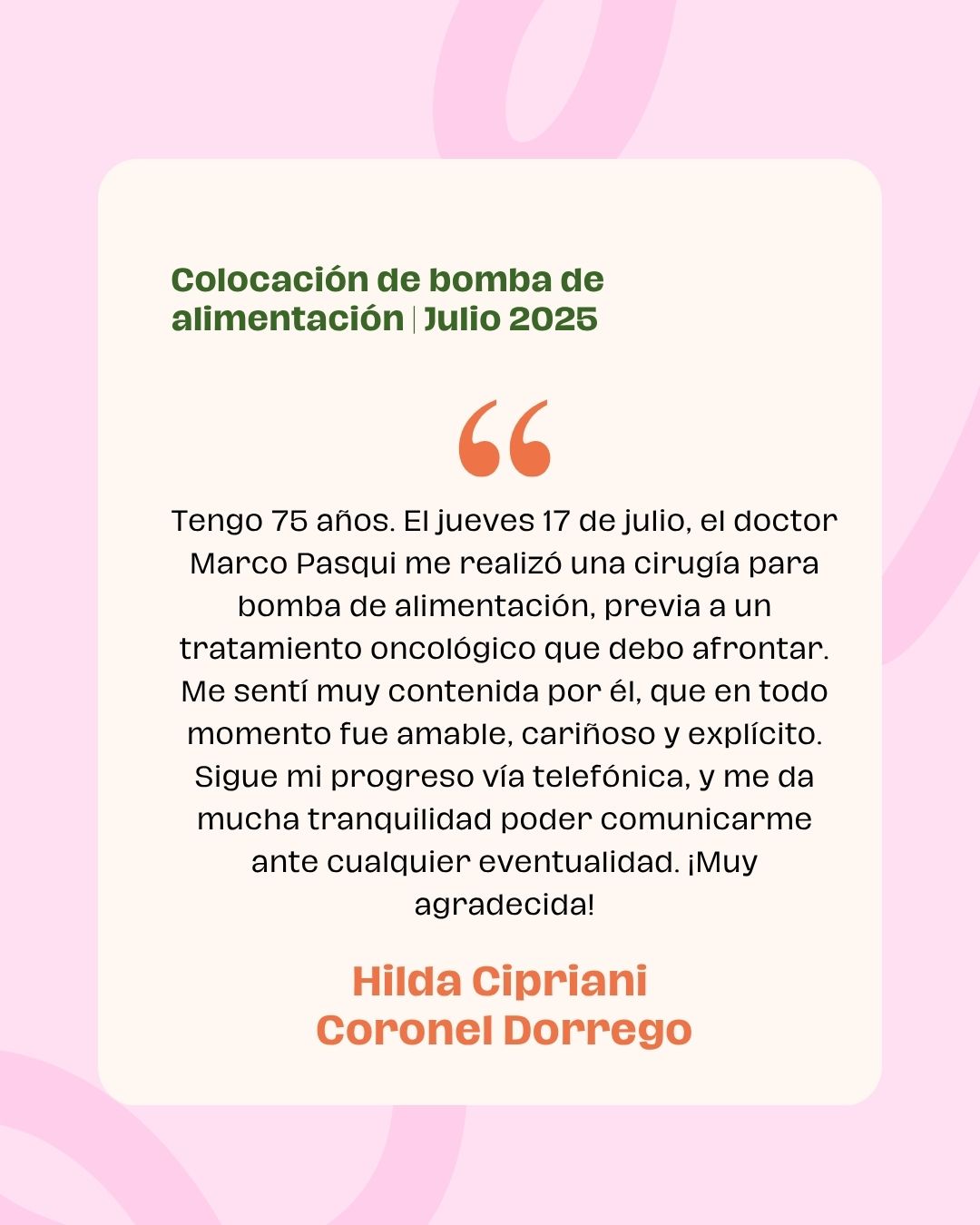 Al principio fue completamente abrumadora la situación pero al realizar la interconsulta, tanto el Doctor Pasqui como su equipo me transmitieron la tranquilidad y confianza que necesitaba.