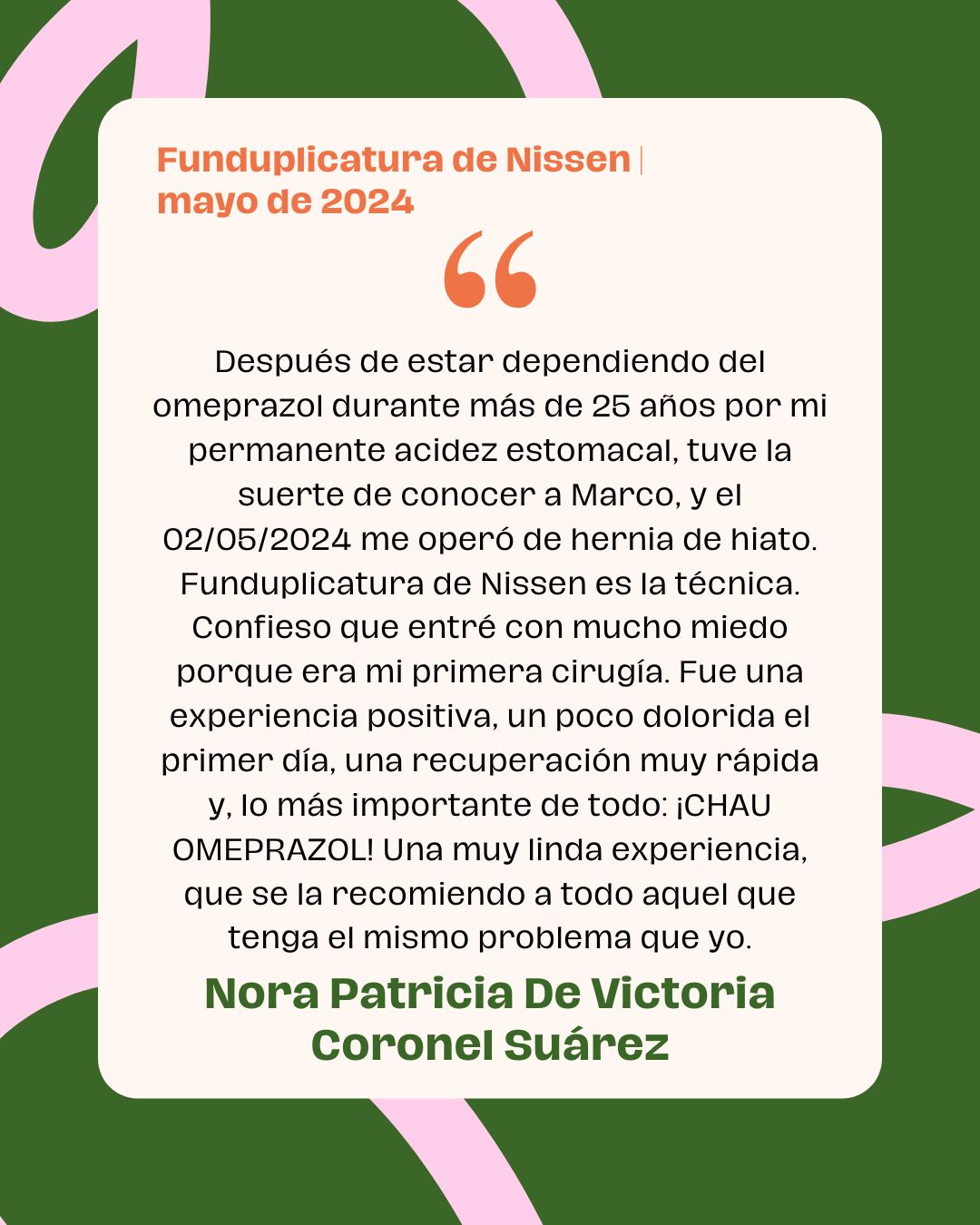 Fue así que después de una batería de muchos estudios, se tomó la decisión de operarme para remover el esófago por la técnica de laparoscopia mínimamente invasiva. La intervención se llevó a cabo el 15 de diciembre de 2023 en el Hospital Doctor Felipe Glasman (H.A.M).