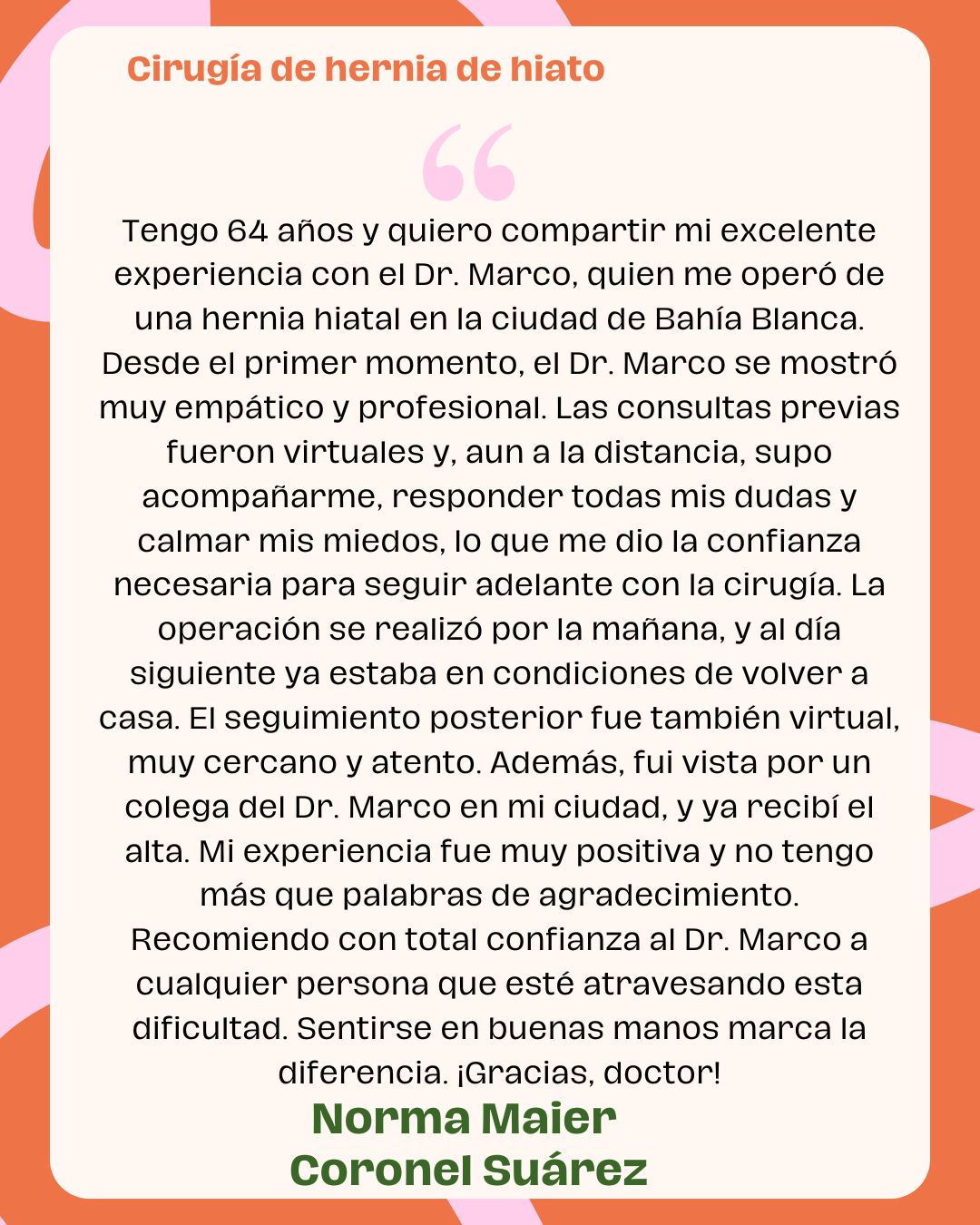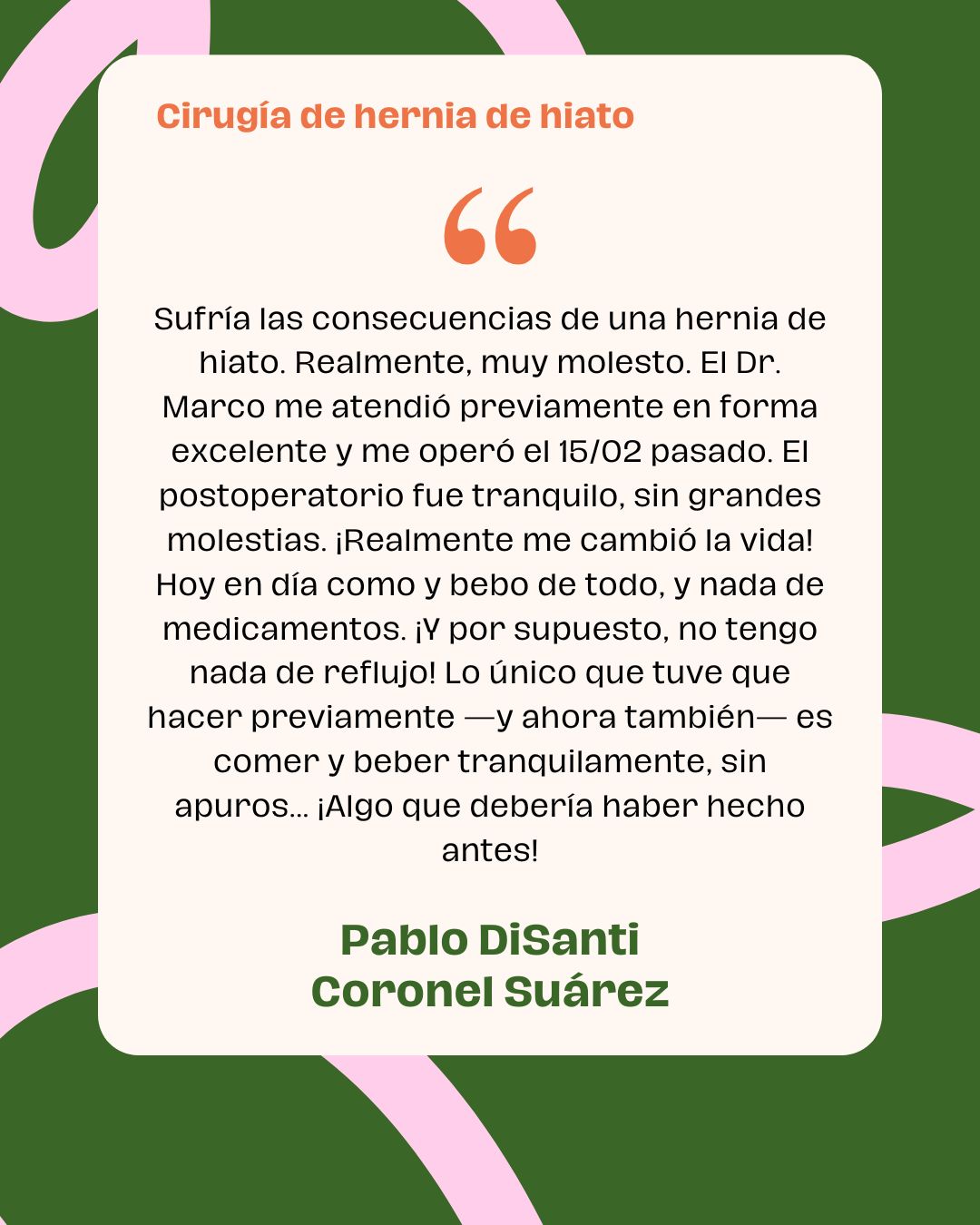Soy paciente del Doctor Marco Pasqui desde que me puso en contacto el servicio de Gastroenterología del Hospital Naval Puerto Belgrano.