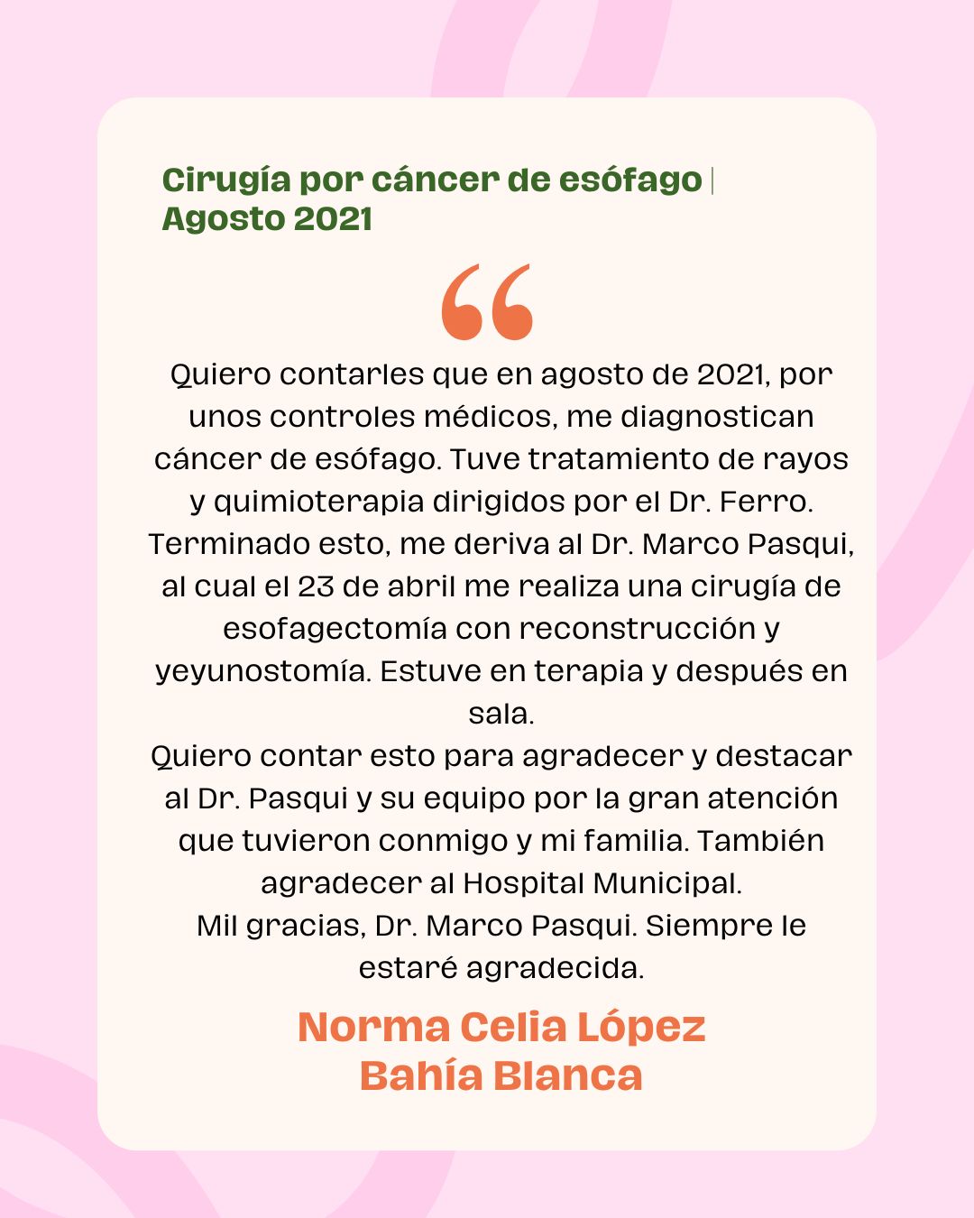 A mediados del año 2023 y por sugerencia familiar, me realicé una videoendoscopia alta y una colonoscopía, ya que en la familia había antecedentes de inconvenientes intestinales. Los estudios se desarrollaron con normalidad pero surgieron hallazgos que hicieron despertar las alarmas a nivel del esófago. Las muestras de biopsia confirmaron la necesidad de estudios más complejos y la interconsulta con un cirujano especialista en el tema. Así fue que rápidamente me pusieron en contacto con el Doctor Pasqui.